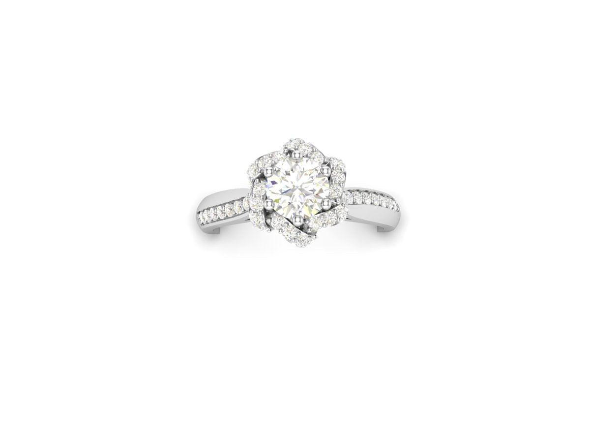 This stunning silver ring features a brilliant fine-cut zircon at the center, embraced by an intricate petal-inspired halo that creates a s…